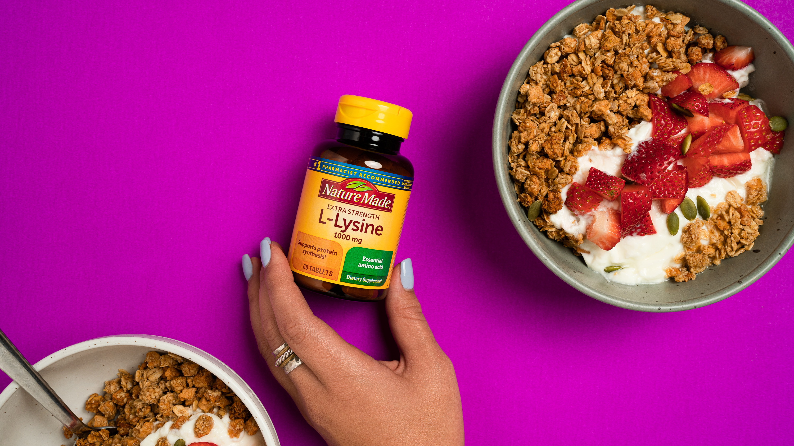 L-Lysine is a building block for protein. It’s an essential amino acid that plays a key role in the creation of body proteins.†