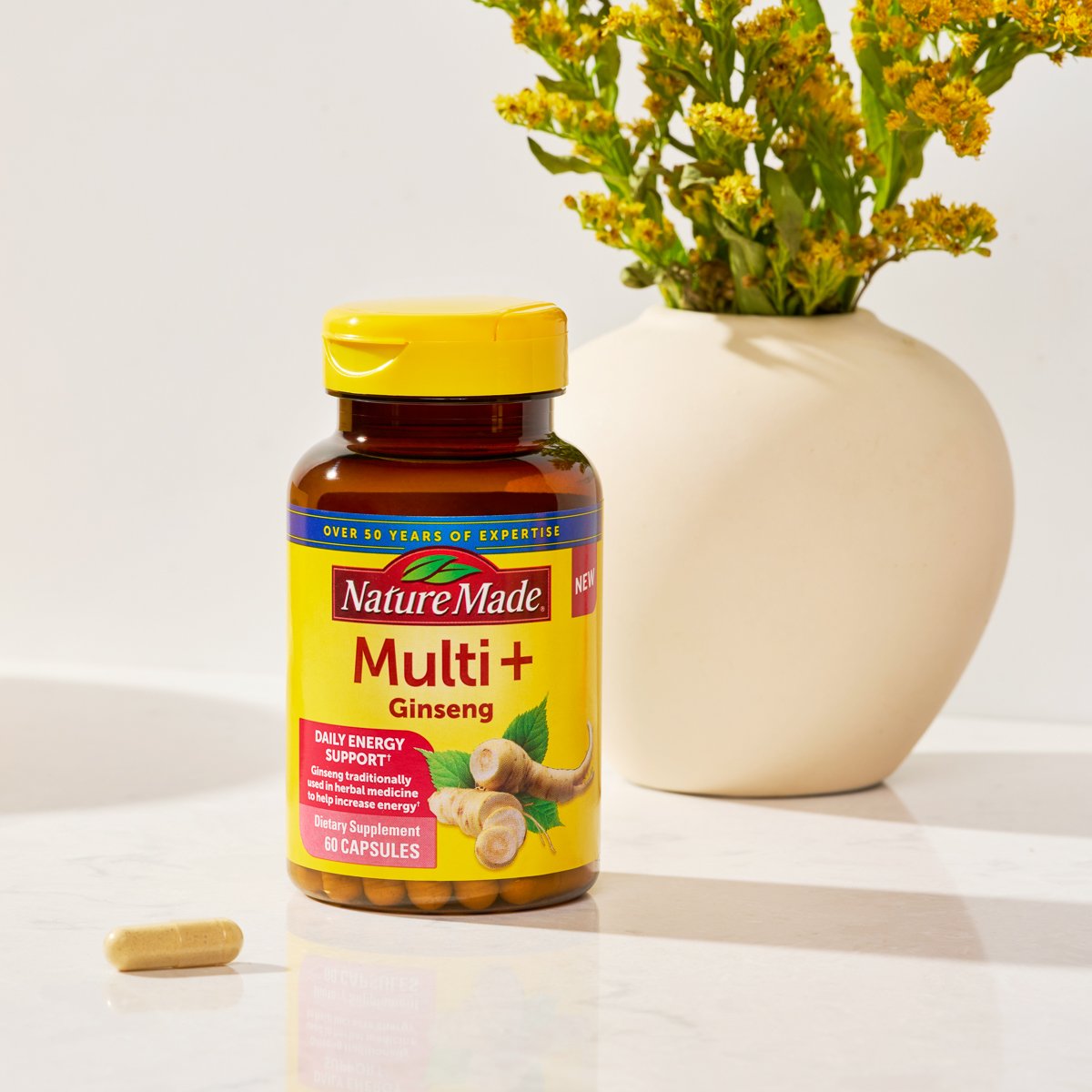 Get more in your Multivitamin! Nature Made® Multi + Ginseng provides 21 key nutrients for daily nutritional support plus Ginseng for daily energy support.