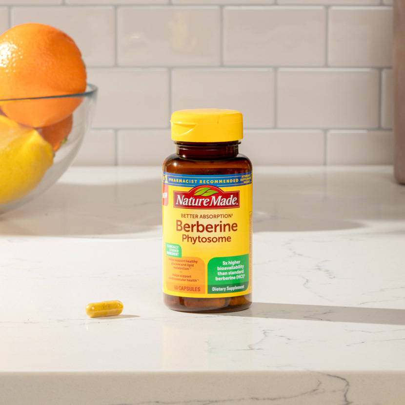 Nature Made® Better Absorption Berberine 550mg capsules provide clinically studied Berberine Phytosome to help support healthy glucose and lipid metabolism & cardiovascular health.◼️ Adults take 1 capsule 2 times daily with water for at least 2 months. Each capsule provides 550 mg of Berberine Phytosome Root Extract for a daily total of 1100 mg.