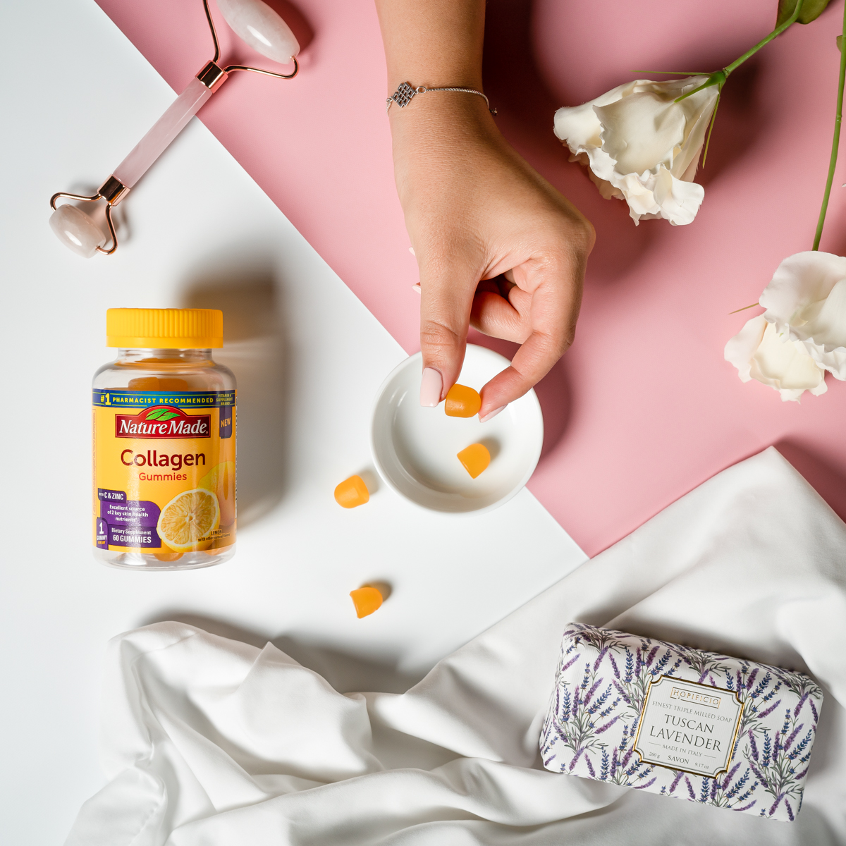 A glowing combo of collagen, vitamin C, and zinc all in one delicious daily gummy.