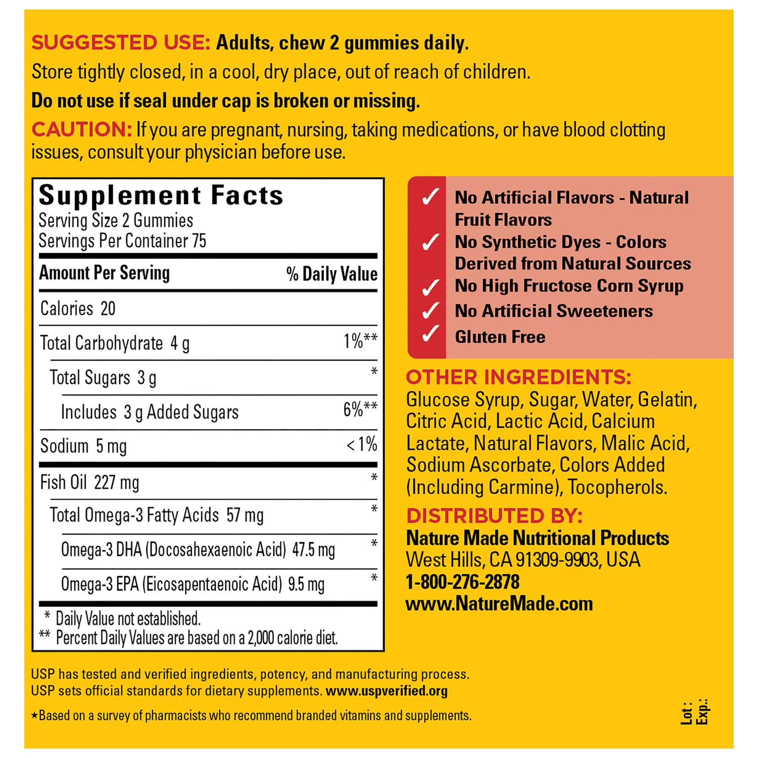 Get a daily dose of heart-healthy Omega-3 fatty acids (EPA and DHA) with two gummies in delicious Strawberry, Orange and Lemon with other natural flavors.†