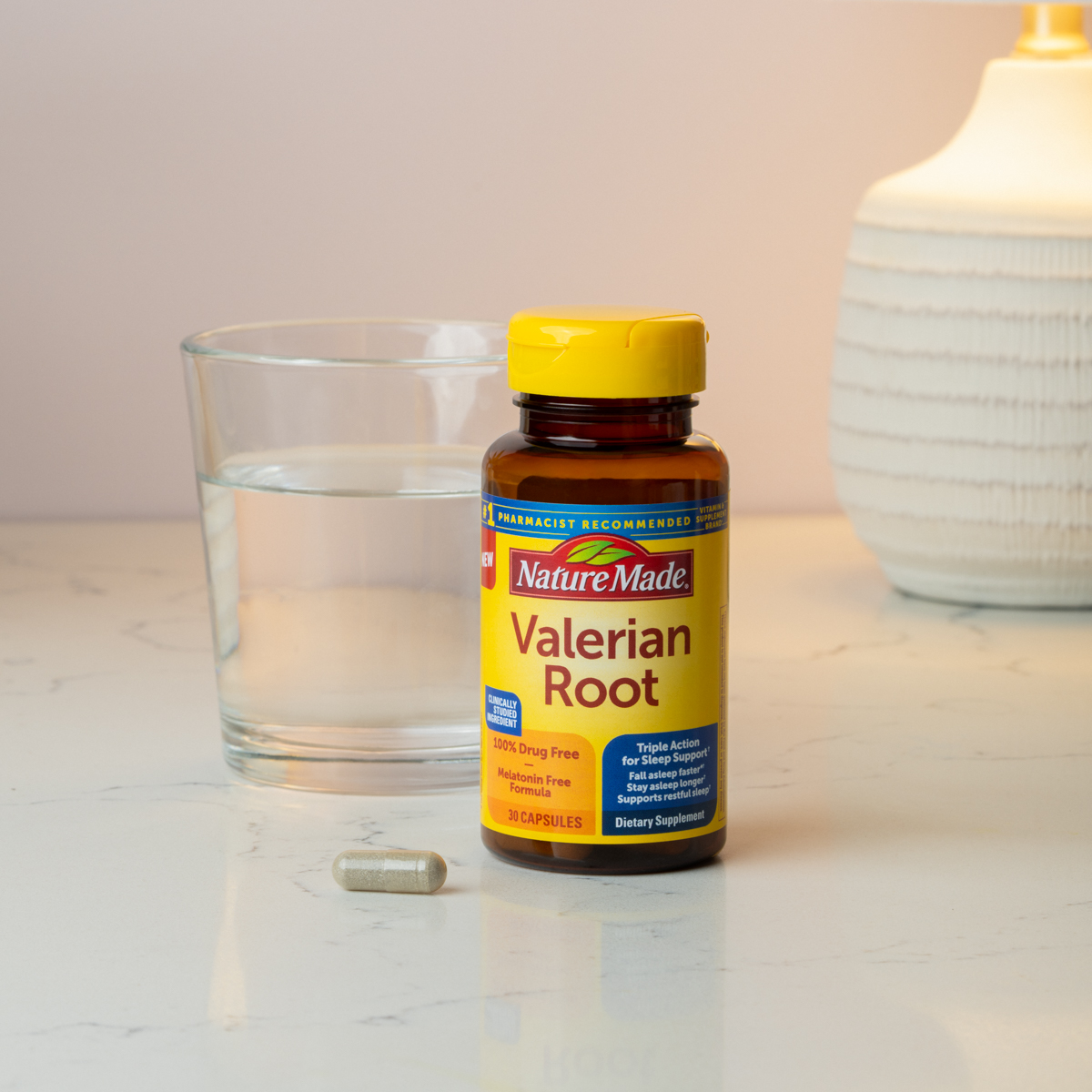 Get triple action sleep support with Nature Made® Valerian Root Capsules. One capsule provides 200 mg of Valerian Root extract to support restful sleep and help you stay asleep longer and fall asleep faster in as little as 3 days when taken daily.†